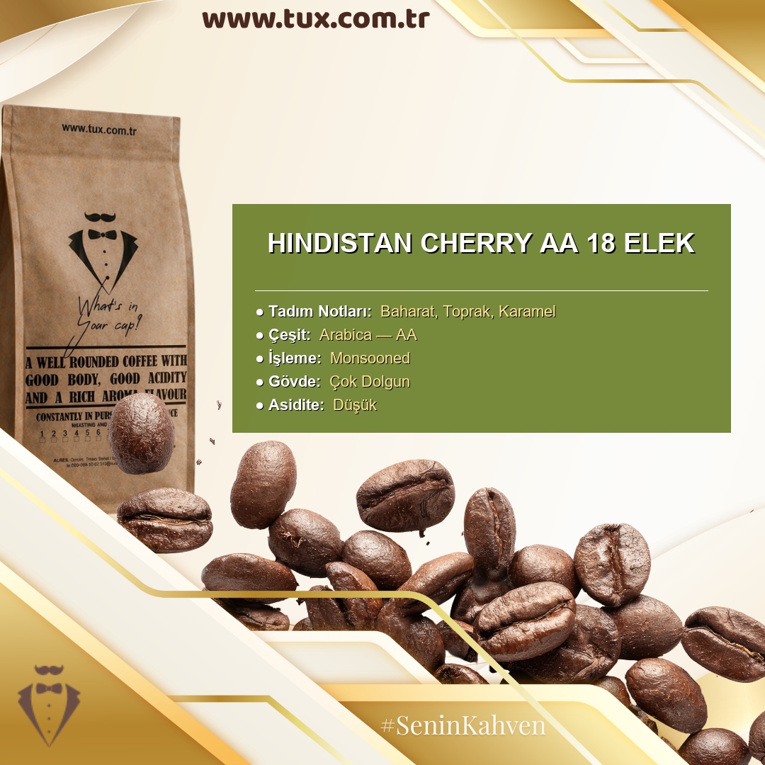 Hindistan Cherry AA 18 Elek — Tux Atölyesi'nden Taze Kavrulmuş Toptan Kahve