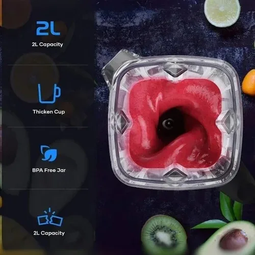 2 litrelik kırılmaz polikarbon haznesi, yoğun kullanımlarda bile darbelere ve ısıya karşı dayanıklıdır. 6 adet FDA gıda sınıfı paslanmaz çelik bıçağı sayesinde buz kırma ve zorlu karışımlar için maksimum performans sağlar.